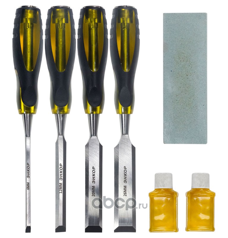 | Enkor | 10440 | Набор стамесок-долот (6,12,20,26мм+брусок) | ||