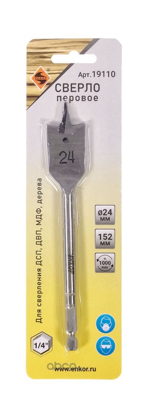 | Enkor | 19110 | Сверло перовое по дереву 24*152мм Энкор | ||