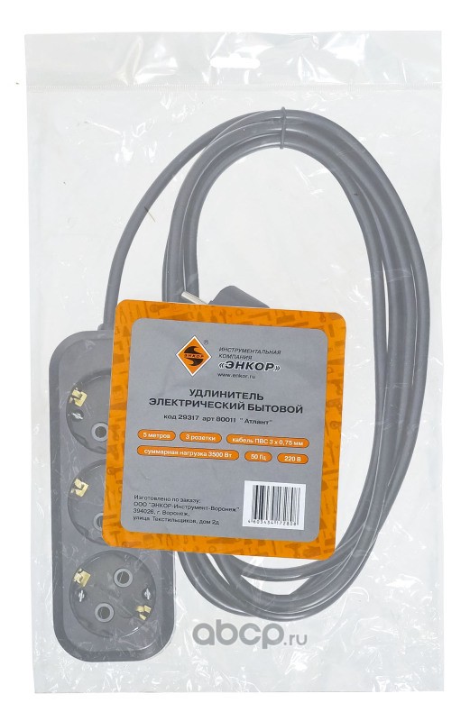 | Enkor | 29317 | Удлинитель эл.бытовой 5м 3роз ПВС, 3500 Вт (1/10) | ||
