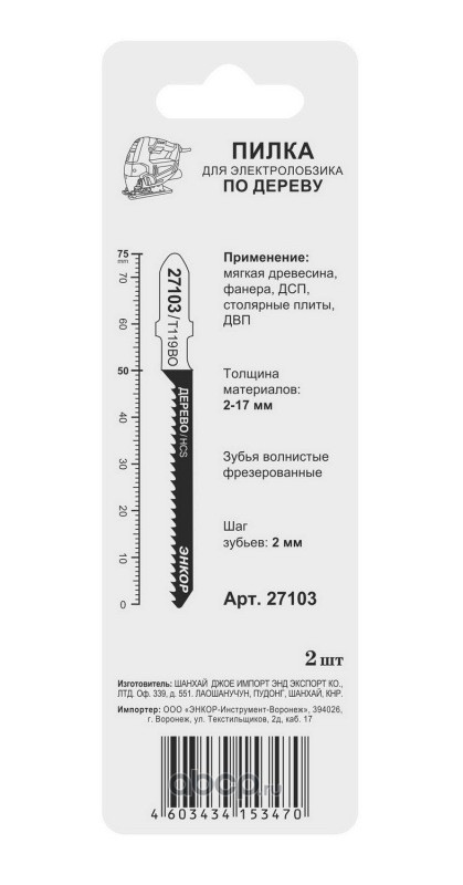 | Enkor | 27103 | Пилка для электролобзика T119 BO, 2 шт. | ||