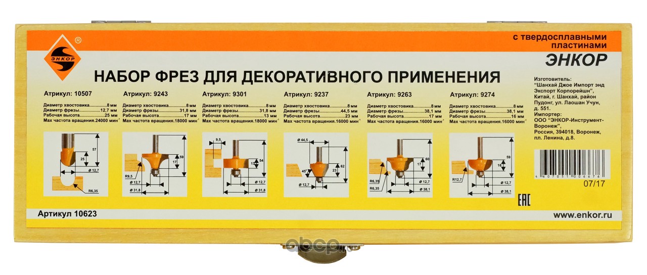 | Enkor | 10623 | Набор фрез д/декоратив прим 6шт хв 8мм | ||
