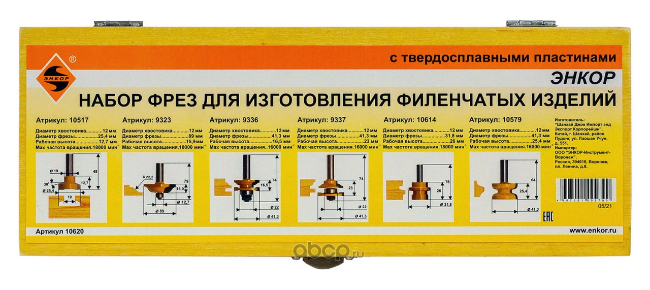 | Enkor | 10620 | Набор фрез д/изг филенчатых изд 6шт хв 12м | ||