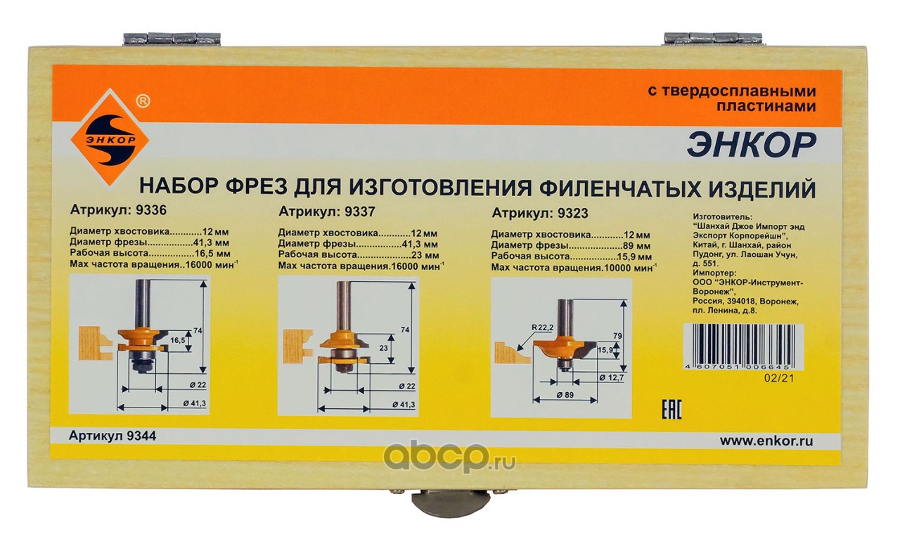 | Enkor | 9344 | Набор фрез д/изгот филен издел 3шт хв 12мм | ||
