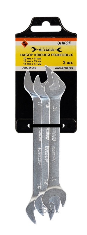 | Enkor | 26059 | Набор ключей рожковых 3шт (10х11,12х13,14х17) | ||