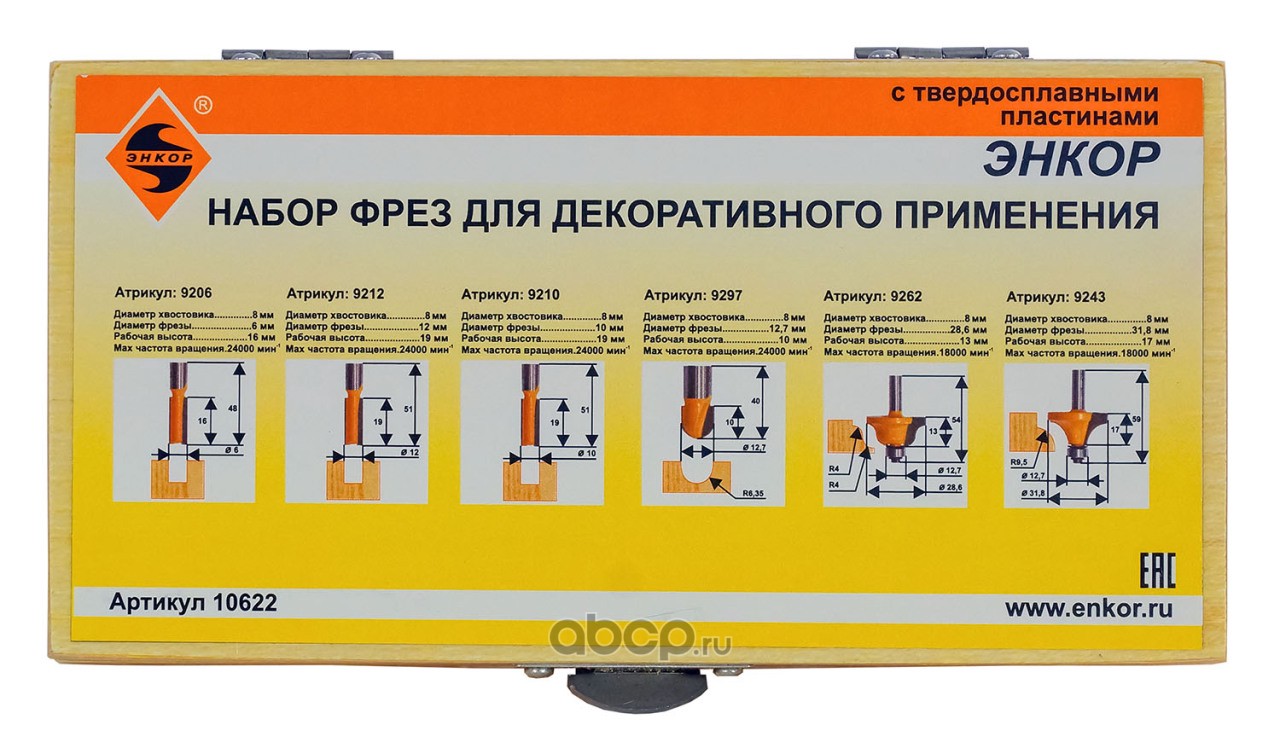 | Enkor | 10622 | Набор фрез д/декоратив прим 6шт хв 8мм | ||