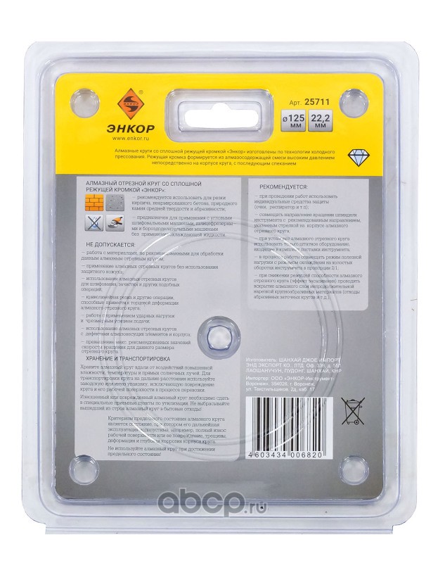 | Enkor | 25711 | Круг алм ф125х22,2мм сплошной универсальный | ||