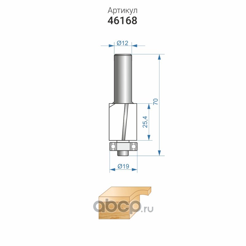 | Enkor | 46168 | Фреза кромочная прямая ф19х25,4мм хв. 12мм | ||