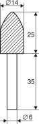 | Enkor | 21659 | Шарошка абр цилиндр с остр наконеч14х25,К60,хв.6мм | ||