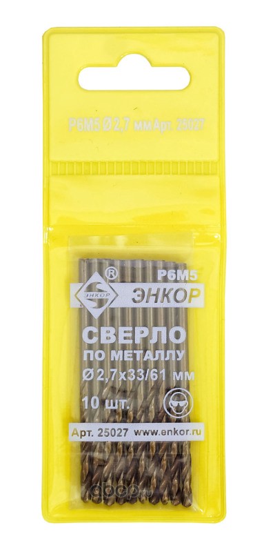 | Enkor | 25027 | Сверло д/мет 2,7х33/61 мм Р6М5 | ||