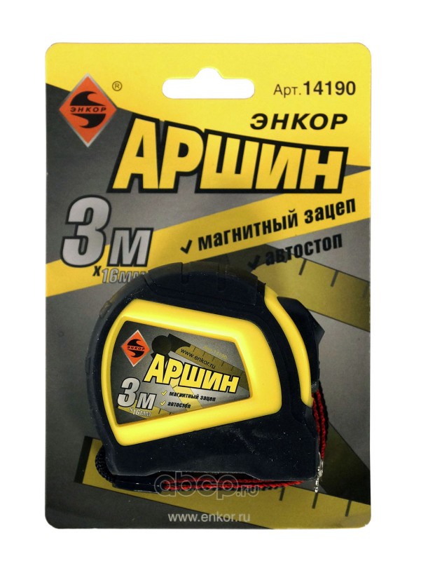 | Enkor | 14190 | Рулетка 3 м АРШИН автостоп с магн. зацепом | ||