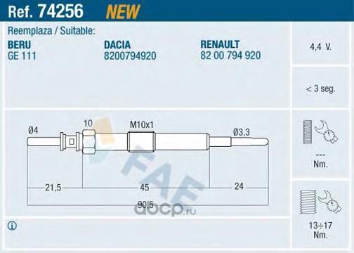 FAE 74256 Свеча накаливания