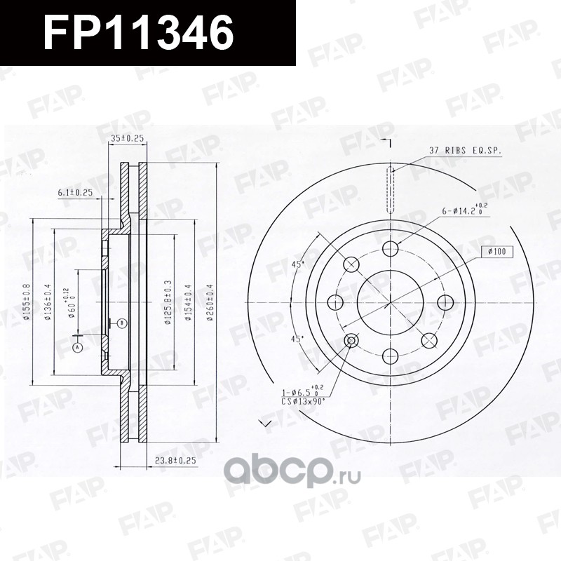 FAP FP11346 Диск тормозной передний