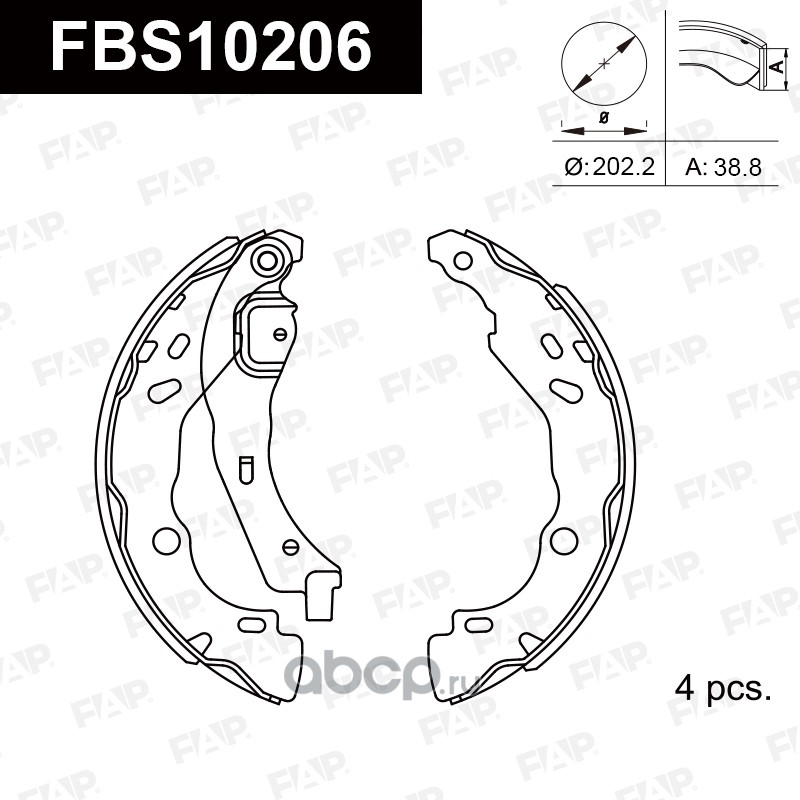**Тормозные колодки FAP проходят точную аркообразную шлифовку, чтобы гарантировать идеальное соответствие каждой тормозной колодки тормозному барабану, обеспечивая оптимальные тормозные характеристики. Компания также предоставляет крепежные элементы, включая рычаги и штифты, для вашего удобства.