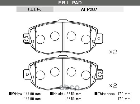 | FBL | AFP287 | Комплект тормозных колодок, дисковый тормоз | ||