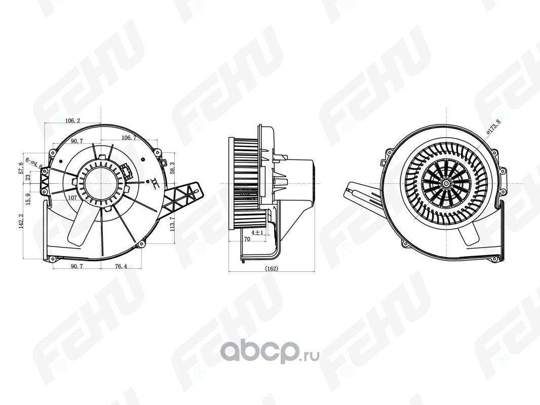 | FEHU | FFH1104 | Электровентилятор отопителя для VW Polo Sedan (10-)/Skoda Rapid (12-) | ||