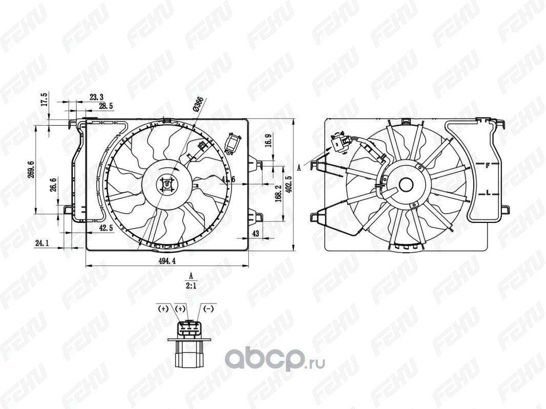 | FEHU | FFC1127H | Электровентилятор охлаждения с Кожухом (2 вент.) для VAZ 21213-214 Niva | ||
