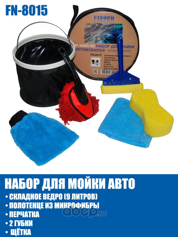 Набор FINORD, для мойки (Ведро 9л, Полотенце 40х40см, перчатка, 2 губки, щётка и сумка)