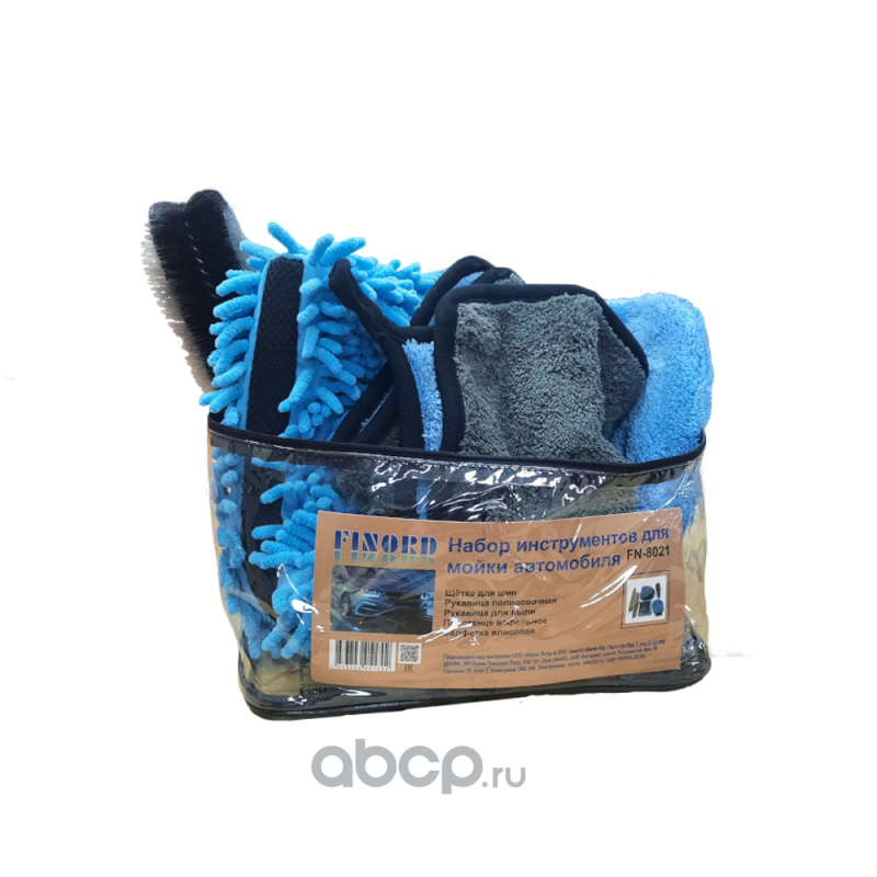 Набор FINORD, для мойки (Рукавица, х2 полотенце 40х40,микрофибра 40х40,скребок,губка,сумка)