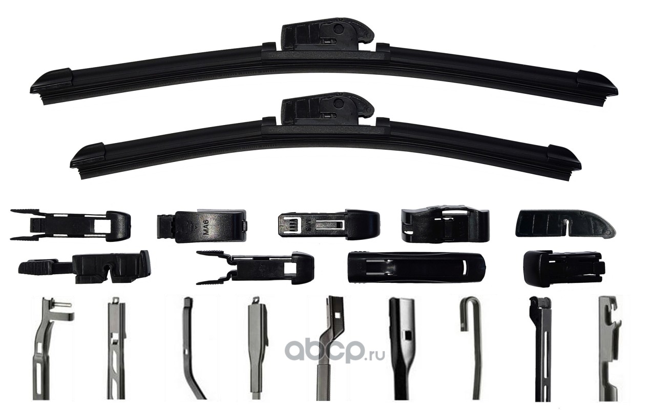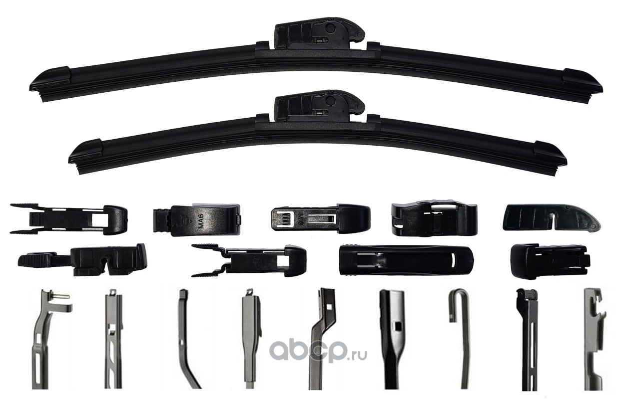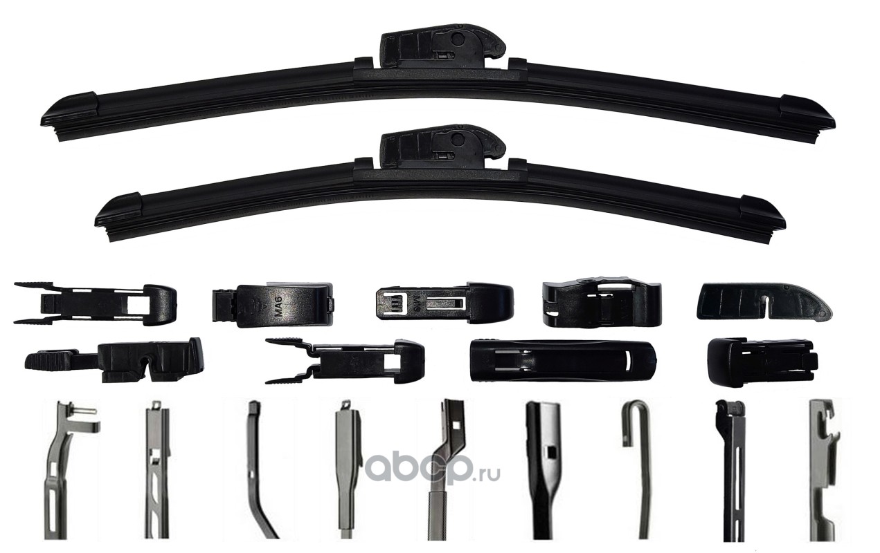 Щетки стеклоочистителя (комплект 500 мм. и 450 мм.), бескаркасные, 9 адаптеров.