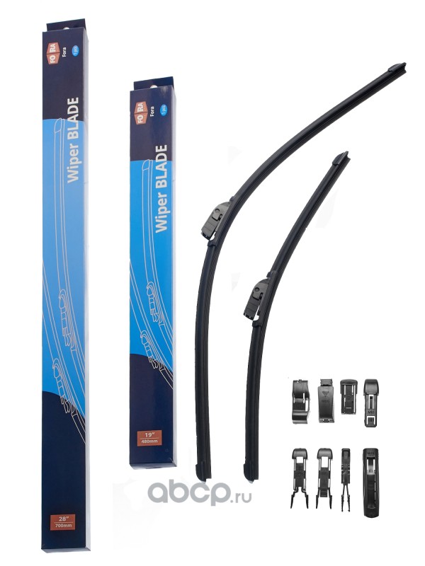 Щетки стеклоочистителя (комплект 530 мм. и 480 мм.), бескаркасные, 9 адаптеров.
