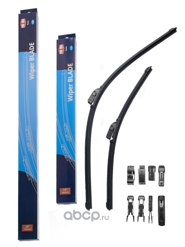 Щетки стеклоочистителя (комплект 480 мм. и 450 мм.), бескаркасные, 9 адаптеров.