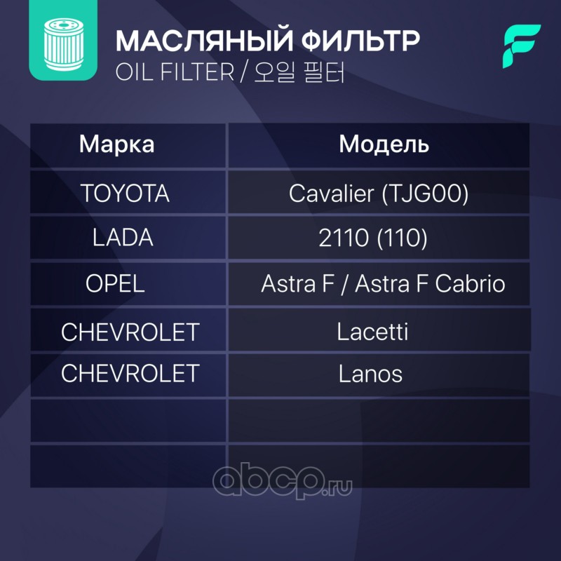 | FORCAR | O2223 | Фильтр масляный | ||