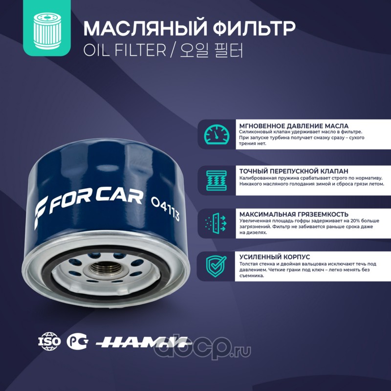 | FORCAR | O4113 | Фильтр масляный | ||