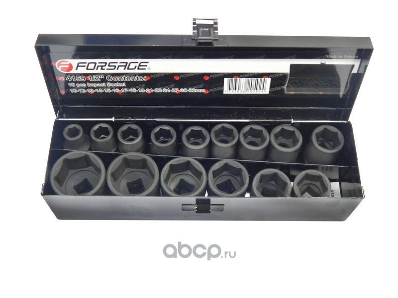 FORSAGE F4159MPB 1/2" Набор головок ударных 15пр.(6-гр.) (10-32мм) в метал.кейсе