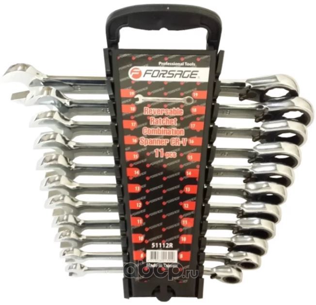 Набор ключей комбинированных трещоточных с реверсом 11пр. (8,10,11,12,13,14,15,16,17,18,19мм)в пластиковом держателе