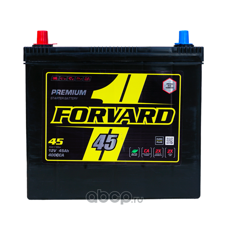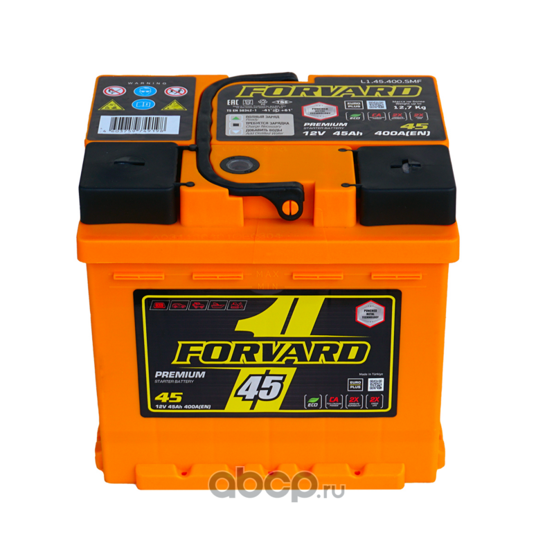 | FORVARD | FL145400MFL | Батарея аккумуляторная 12В 45А/ч 400EN прямая полярность стандарт (Европа) клеммы | ||