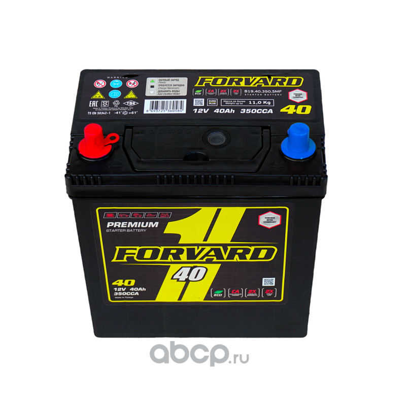 | FORVARD | FB1940350SMFL | Батарея аккумуляторная ASIA 12В 40А/ч 350CCA прямая полярность тонкие вынос. (Азия) клеммы | ||