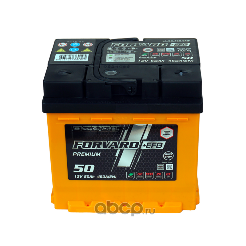 | FORVARD | FL150450SMF | Батарея аккумуляторная EFB 12В 50А/ч 450EN обратная полярность стандарт (Европа) клеммы | ||