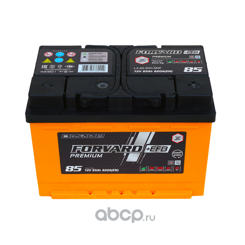 | FORVARD | FL385820SMFL | Батарея аккумуляторная EFB 12В 85А/ч 820EN прямая полярность стандарт (Европа) клеммы | ||