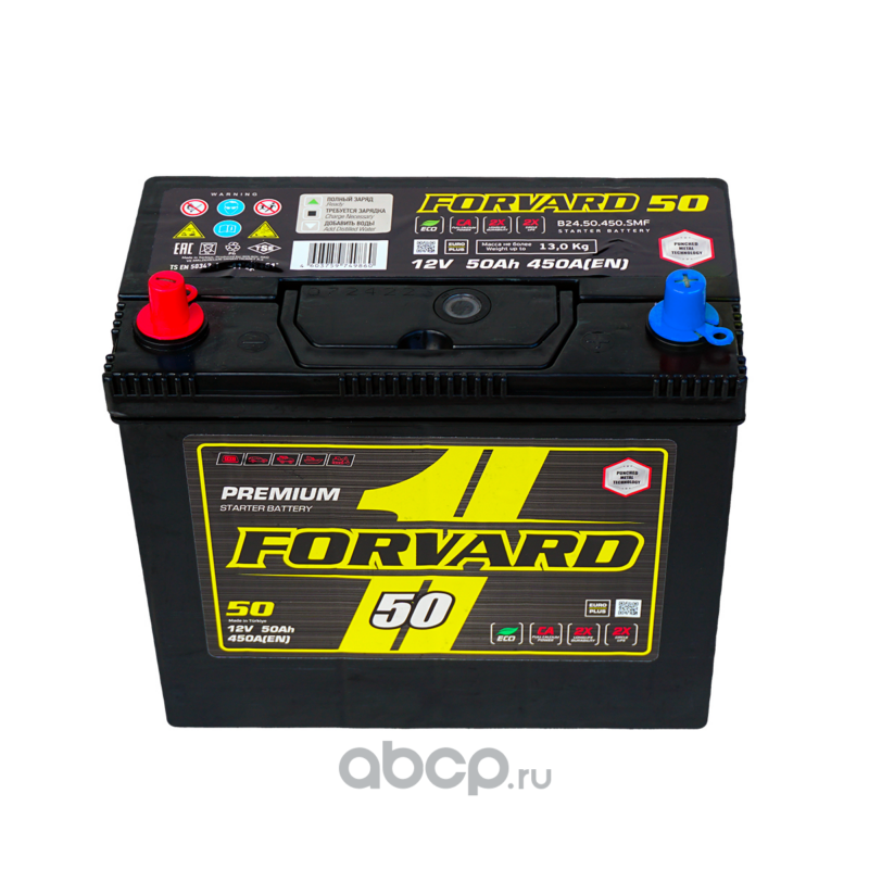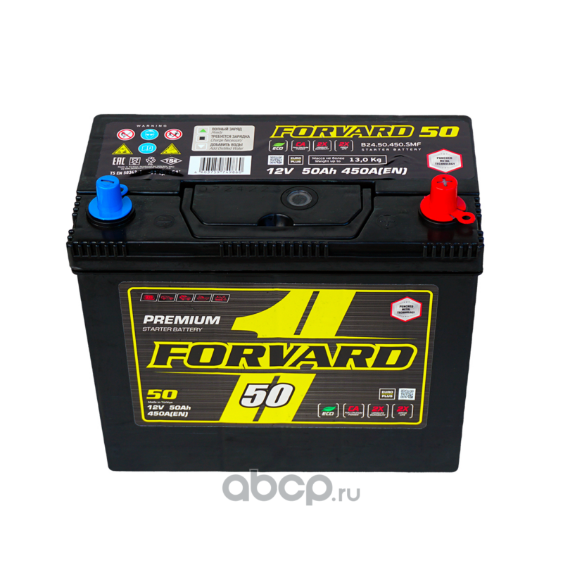 | FORVARD | FB2450450SMFL | Батарея аккумуляторная ASIA 12В 50А/ч 450CCA прямая полярность тонкие вынос. (Азия) клеммы | ||