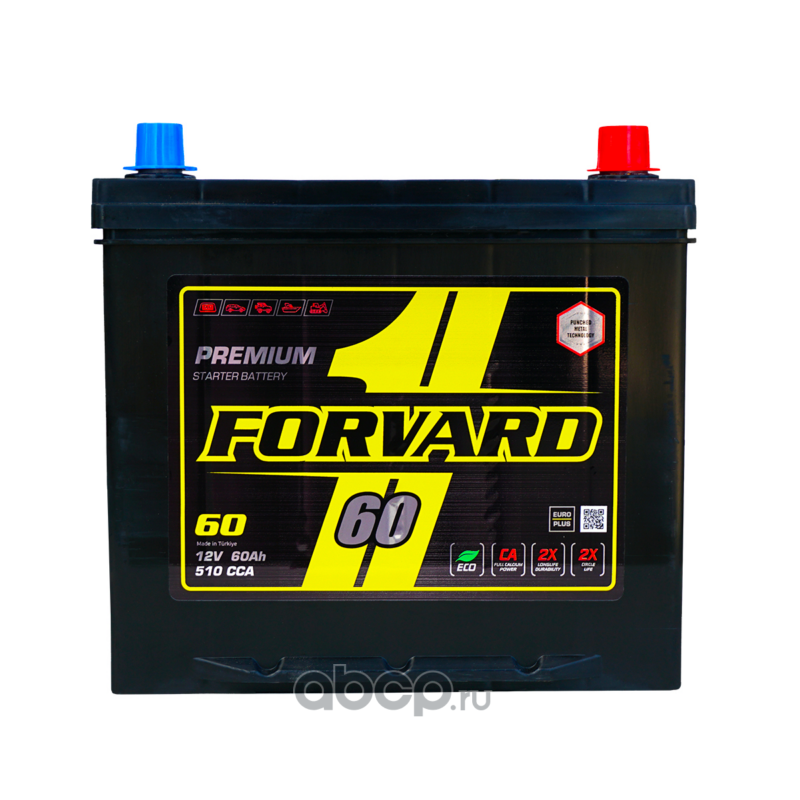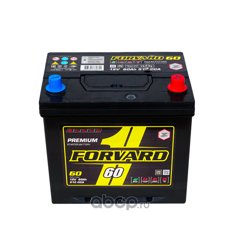 | FORVARD | FD2360510SMF | Батарея аккумуляторная ASIA 12В 60А/ч 510CCA обратная полярность вынос. (Азия) клеммы | ||