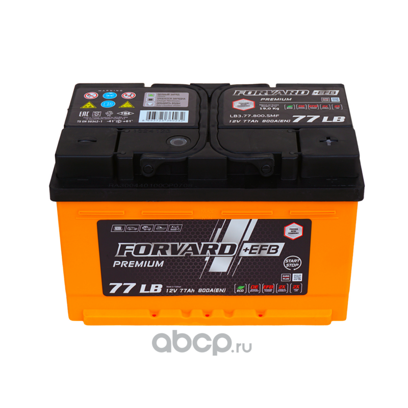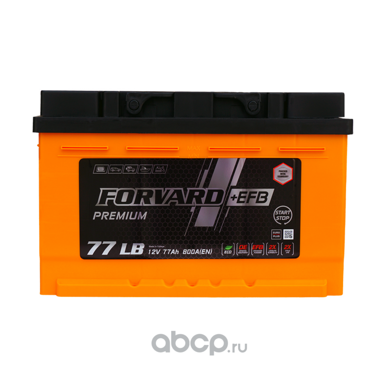 | FORVARD | FL377800SMF | Батарея аккумуляторная EFB LB 12В 77А/ч 800EN обратная полярность стандарт (Европа) клеммы низкий корпус | ||