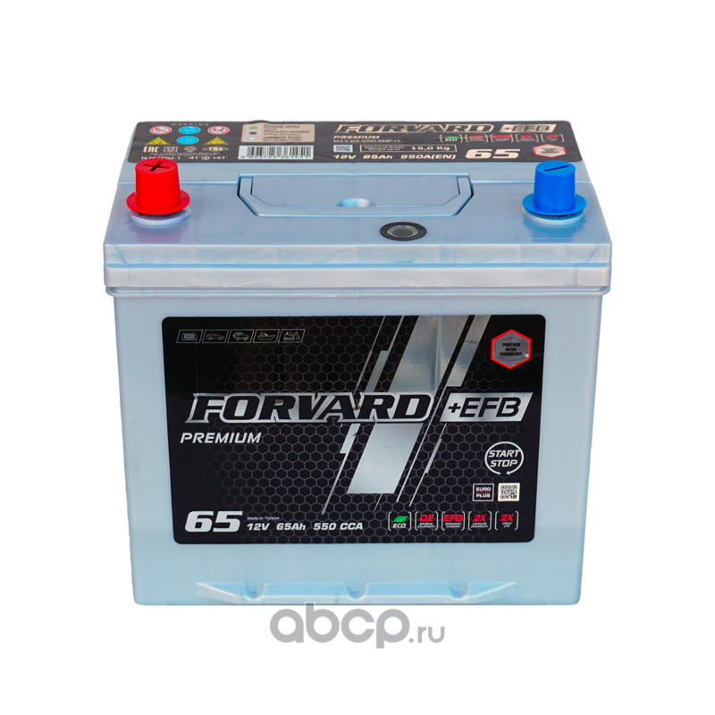 | FORVARD | FD2365550SMFL | Батарея аккумуляторная EFB ASIA 12В 65А/ч 550CCA прямая полярность вынос. (Азия) клеммы | ||