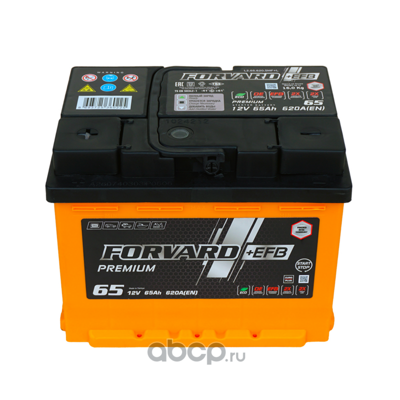 | FORVARD | FL265620SMFL | Батарея аккумуляторная EFB 12В 65А/ч 620EN прямая полярность стандарт (Европа) клеммы | ||