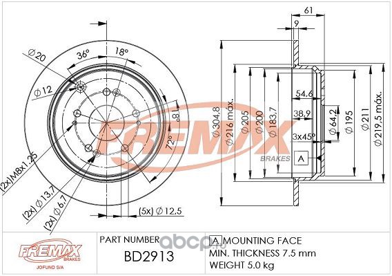 | FREMAX | BD8675 | Диск тормозной задний | ||