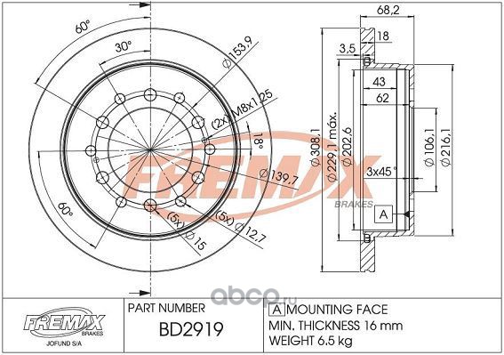 | FREMAX | BD2919 | Диск тормозной | ||