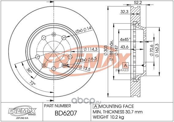 | FREMAX | BD6207 | Диск тормозной | ||
