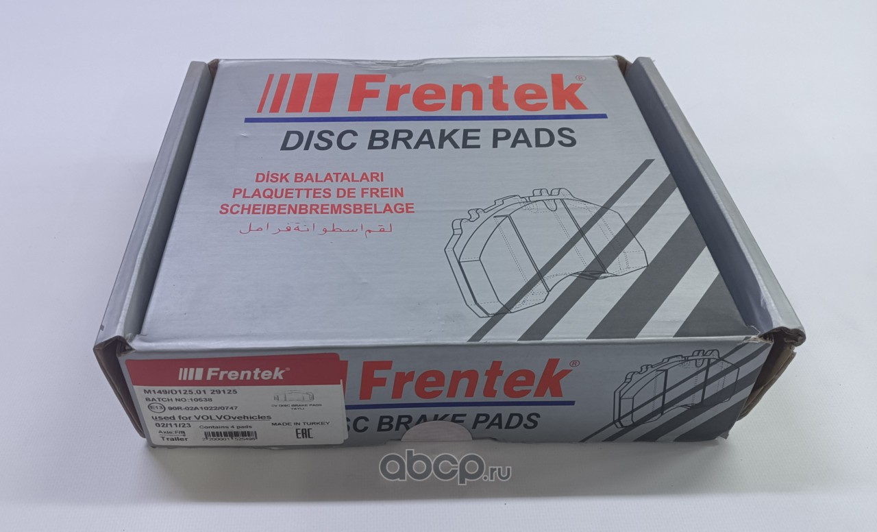 | FRENTEK | M149D12501 | Колодки дисковые !249.5x111.7x29.00VolvoFL618(1/00-) FH12/16(1/00-) FM9/12(1/00-) | ||