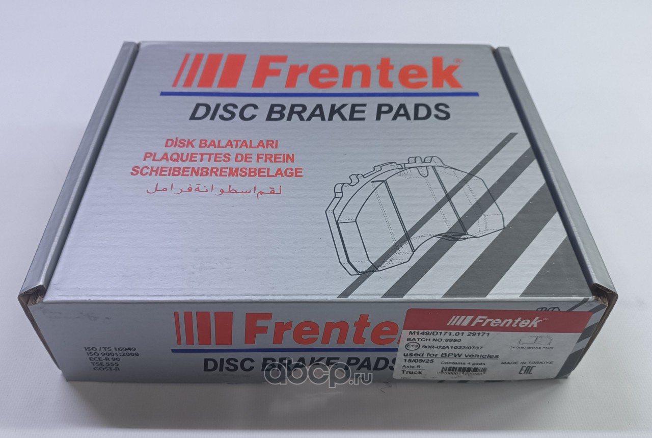 | FRENTEK | M149D17101 | Колодки дисковые !210.8x108x30 с р/к BPW. KNORR SB4309T SK7 | ||