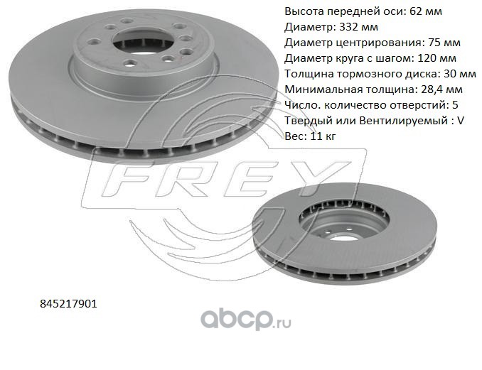 | FREY | 845217901 | Диск тормозной передний, | ||
