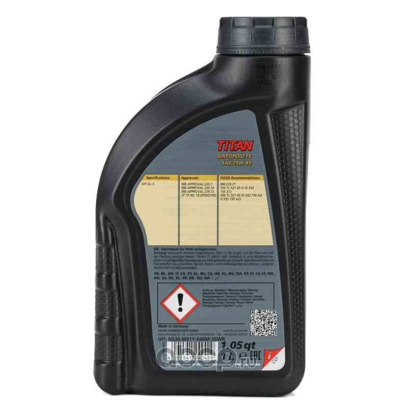 | FUCHS | 601411533 | Масло дифференциал синтетика 75W-85 GL-5 1л. | ||