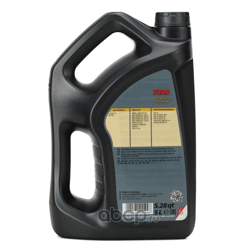 | FUCHS | 602007278 | Масло моторное синтетика FUCHS TITAN GT1 FLEX 3 5W-40 5 л. | ||