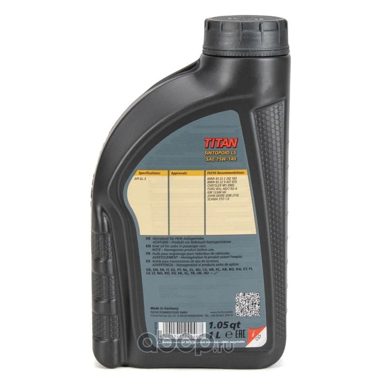 | FUCHS | 602010537 | Масло дифференциал,МКПП,мост 75W-140 GL-5 1л. | ||