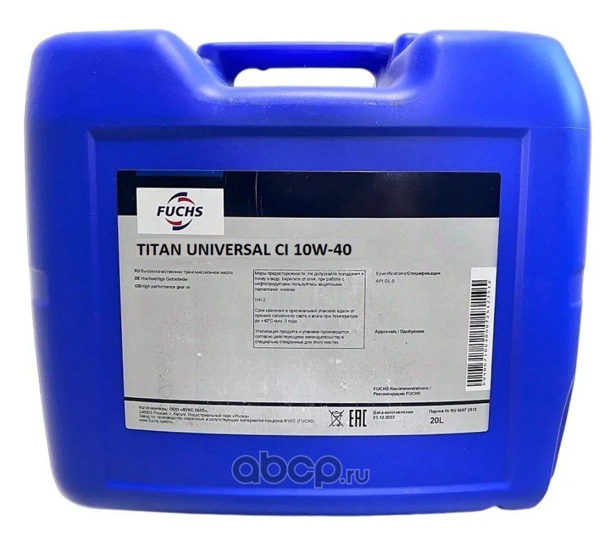 | FUCHS | 2047800002 | Масло моторное полусинтетика FUCHS TITAN UNIVERSAL CI MC 10W-40 20 л. | ||