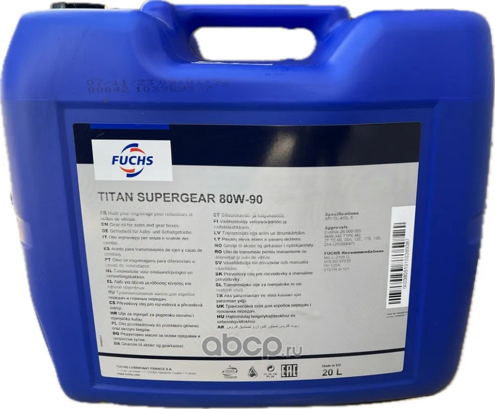 | FUCHS | 0057631003 | Масло МКПП, 80W-90 GL-4 20 л. | ||