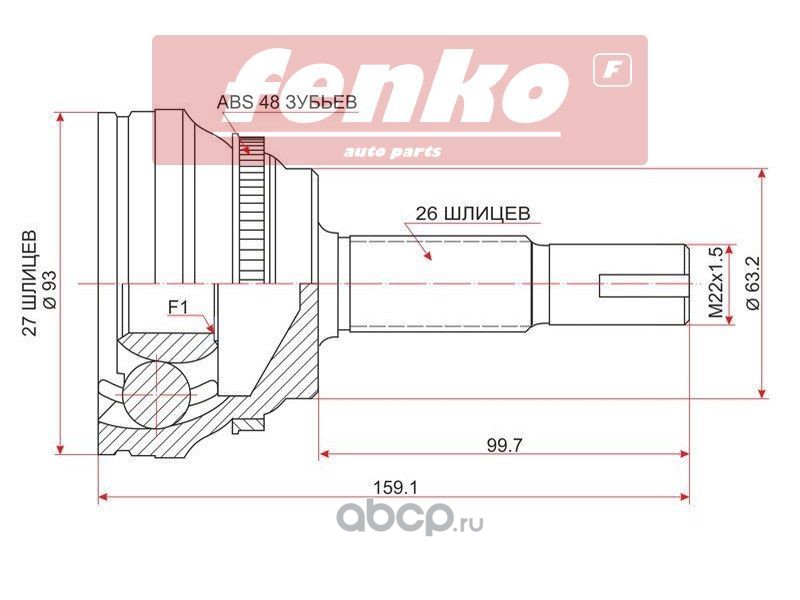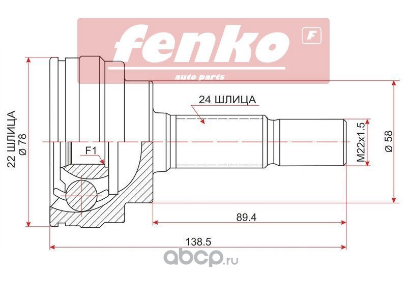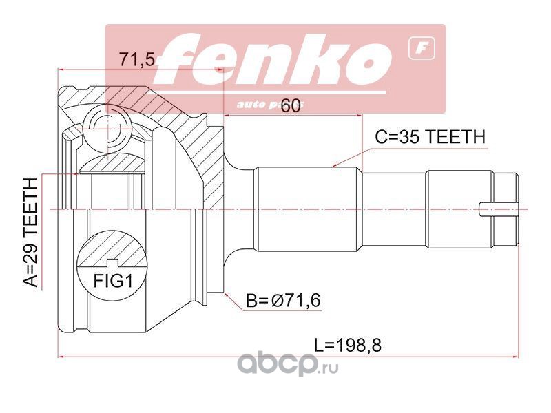 Fenko | 777C40911 | Шрус наружный RR MITSUBISHI OUTLANDER CU 02-06 | |